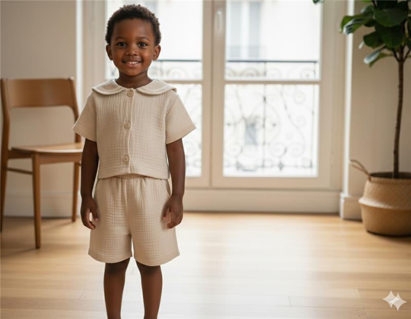 Liberté et Douceur pour l’Aventure. Ce short unisexe est le compagnon idéal des jeux et des journées ensoleillées. Sa matière naturelle ultra-douce et sa coupe pensée pour le mouvement garantissent confort et style à tous les enfants.